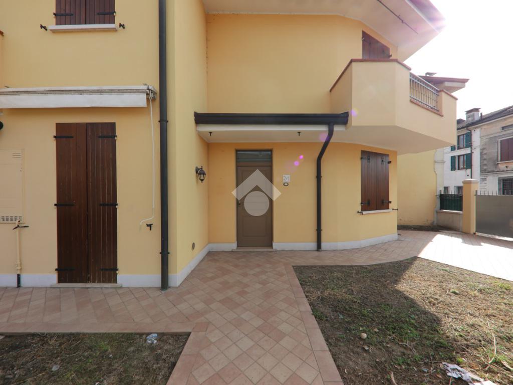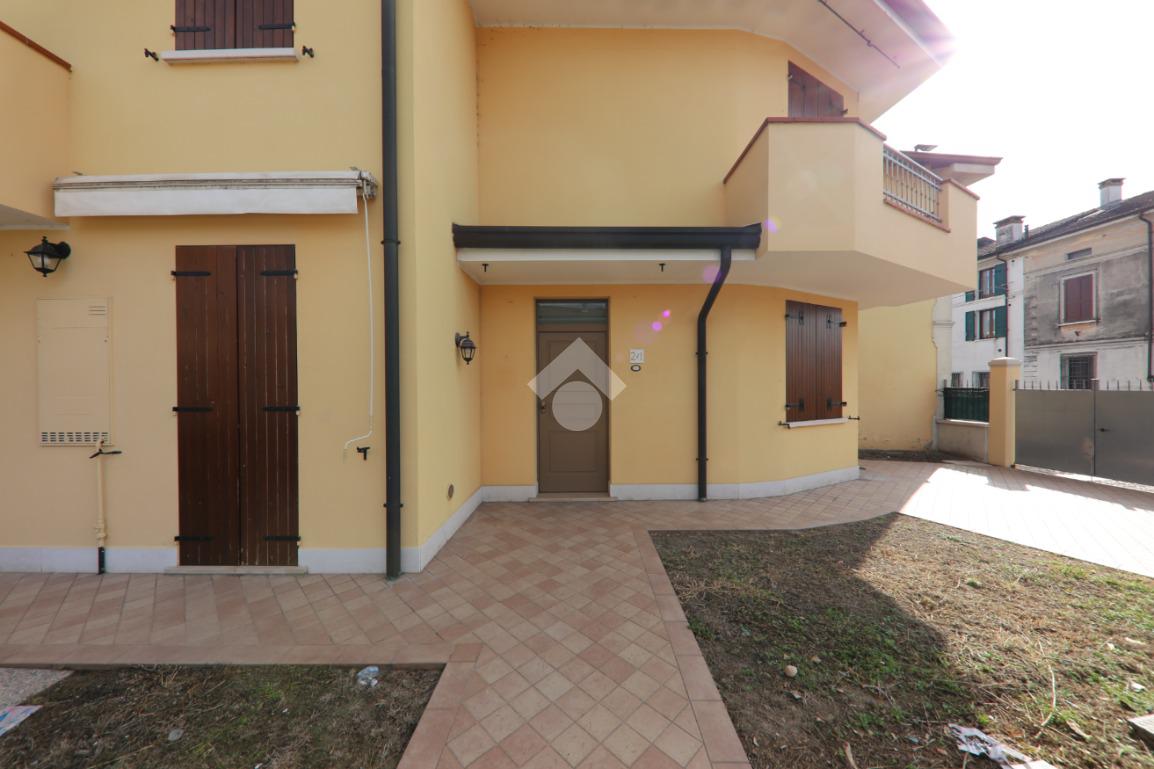 Villetta d'angolo di recente costruzione su due livelli e composta da soggiorno, cucina abitabile con porta finestra verso il giardino per pmangiare all'aperto, disimpegno/lavanderia e bagno a piano terra. Al primo piano sono invece presenti due camere da letto entrambe con balcone e un secondo bagno. Davanti all'immobille, di forma curva è presente un giardino in parte a prato e in parte pavimentato mentre a pochi passi è disponibile un comodo garage con posto auto davanti!
