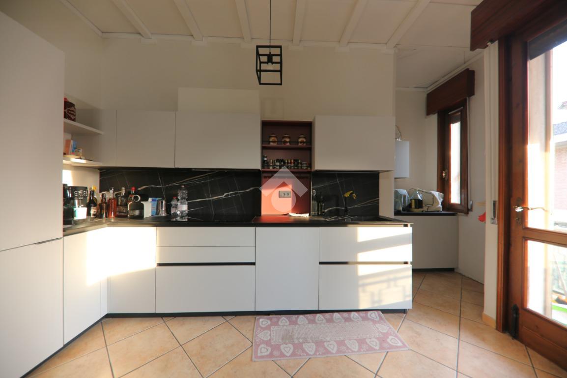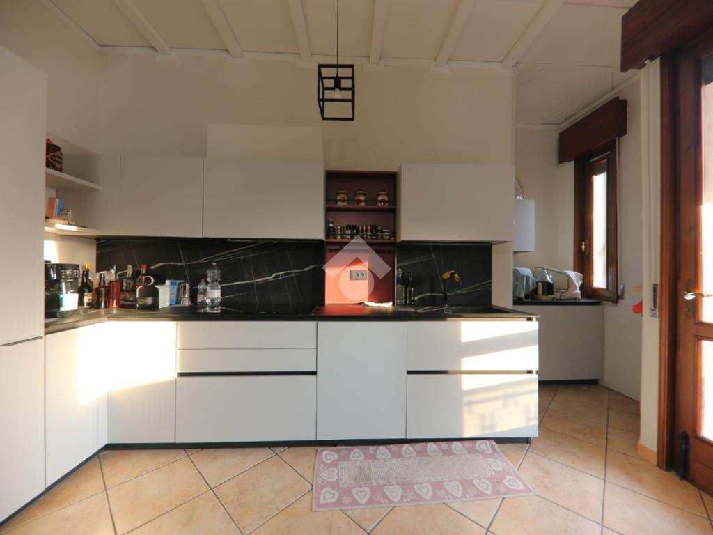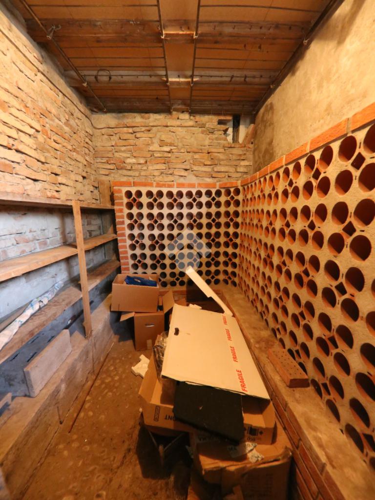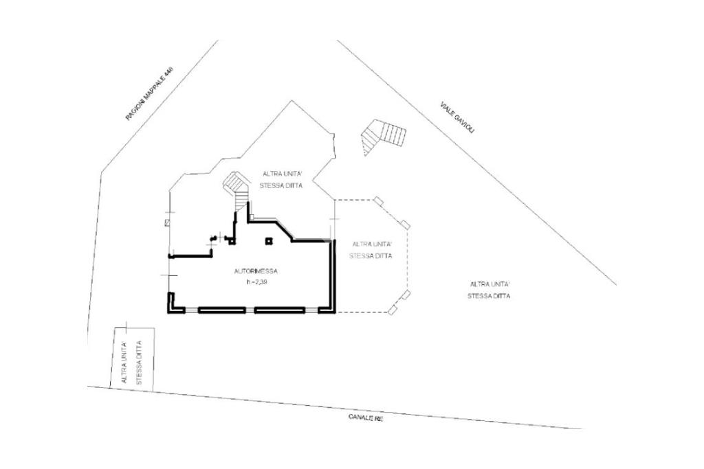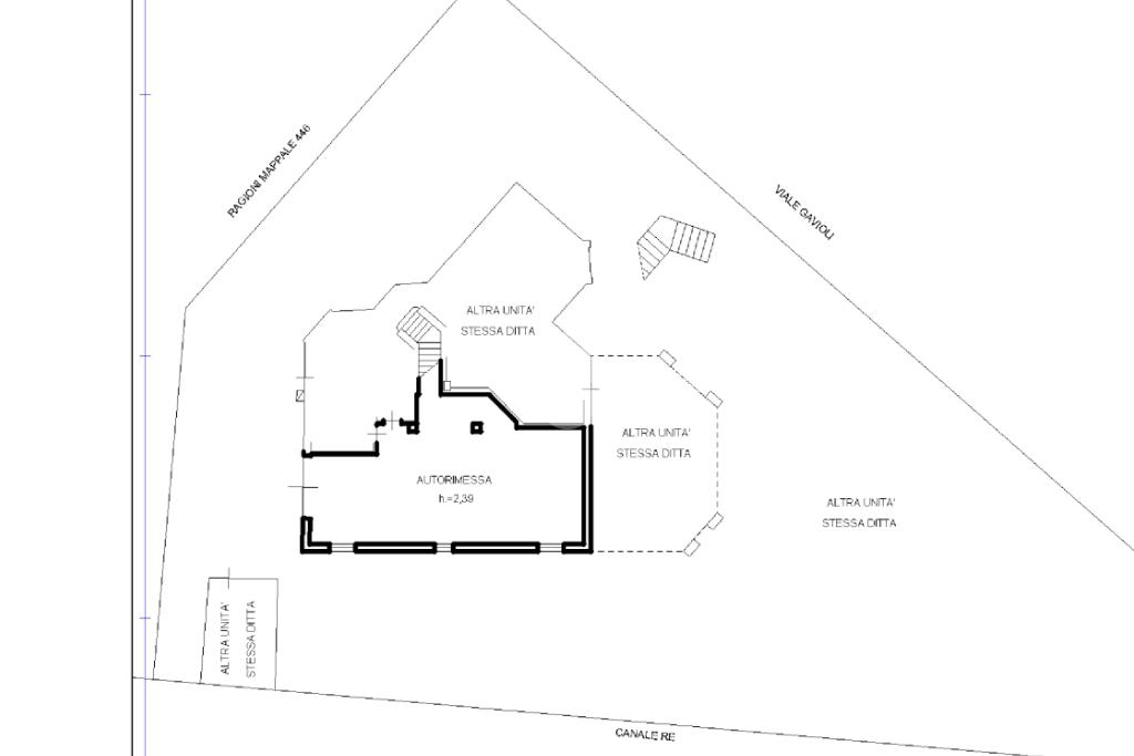 L'immobile, partendo da l piano rialzato, si compone di ingresso triangolare, grande soggiorno ottagonale con finestre sugli spigoli e balcone, grande cucina abitabile con secondo balcone, corridoio, tre camere matrimoniali, bagno e rispotiglio mentre al piano terra è presente una taverna con camino, cantina per i vini, lavanderia, disimpegno e profondo garage doppio. Completano la proprietà il grande giardino con rustico esterno.