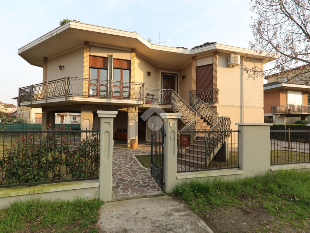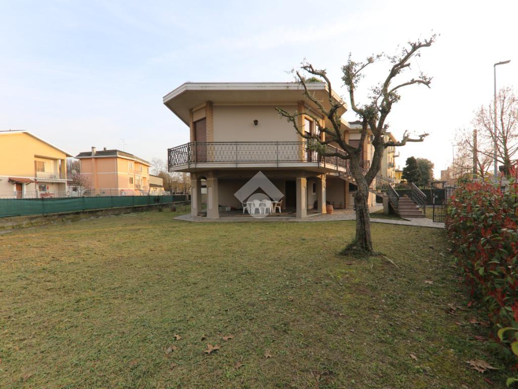 Signorile villa singola del 1970, realizzata da un rinomato progettista locale, disposta su due livelli e completa di grande autorimessa, rustico esterno e ampio giardino attorno!