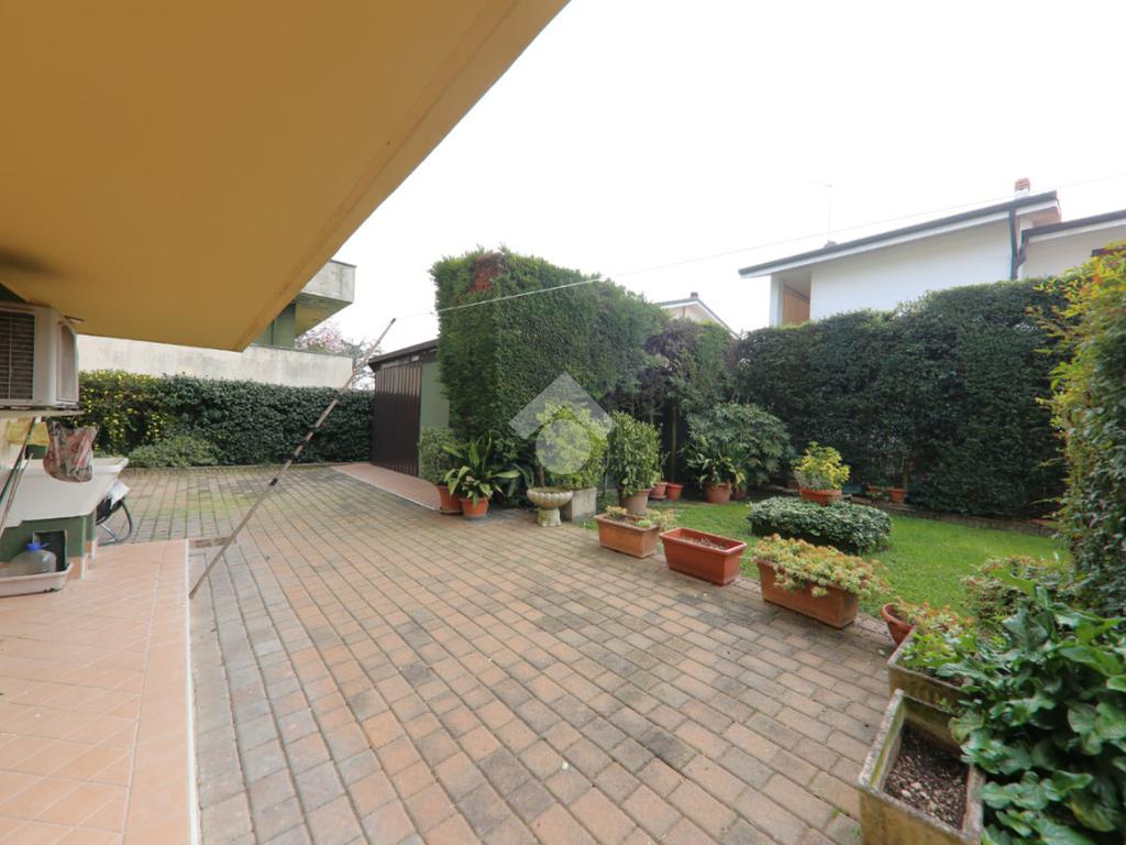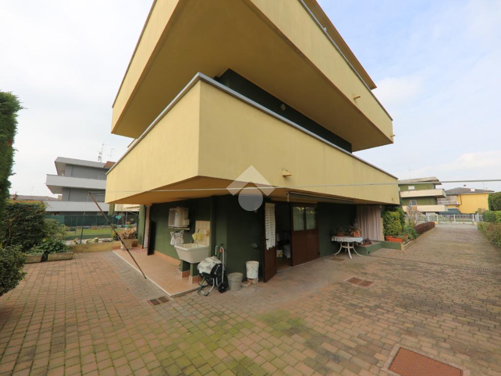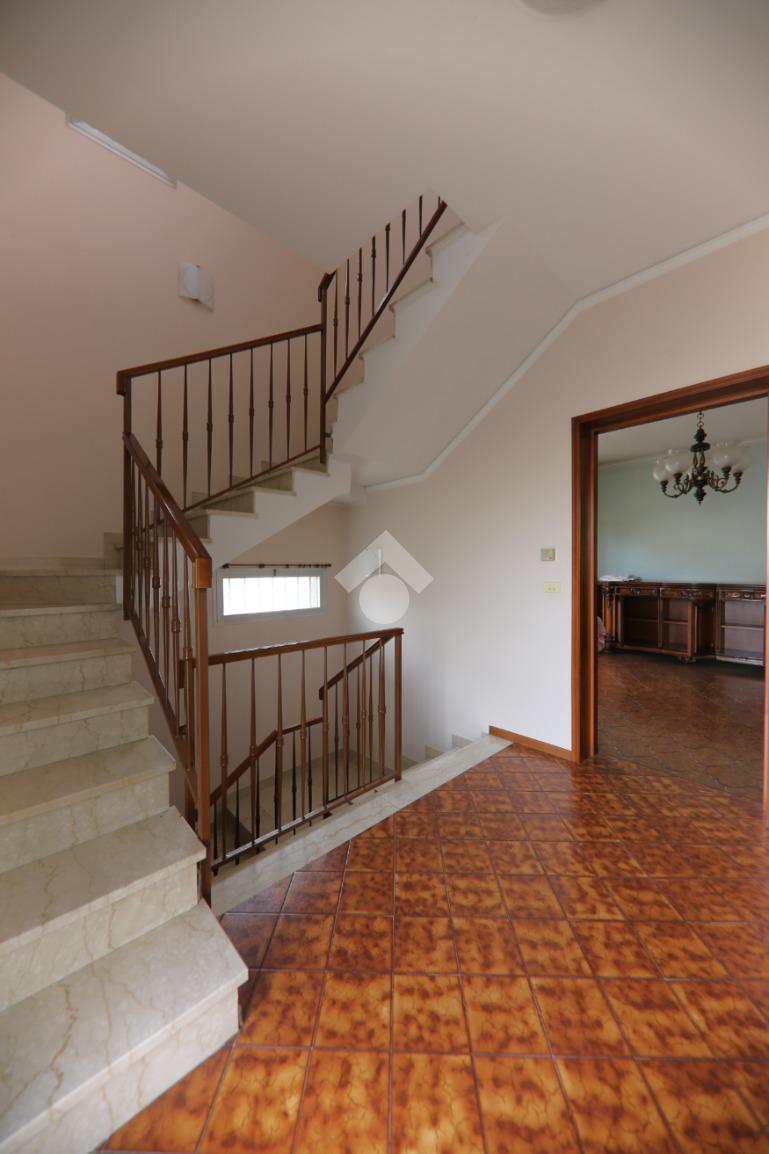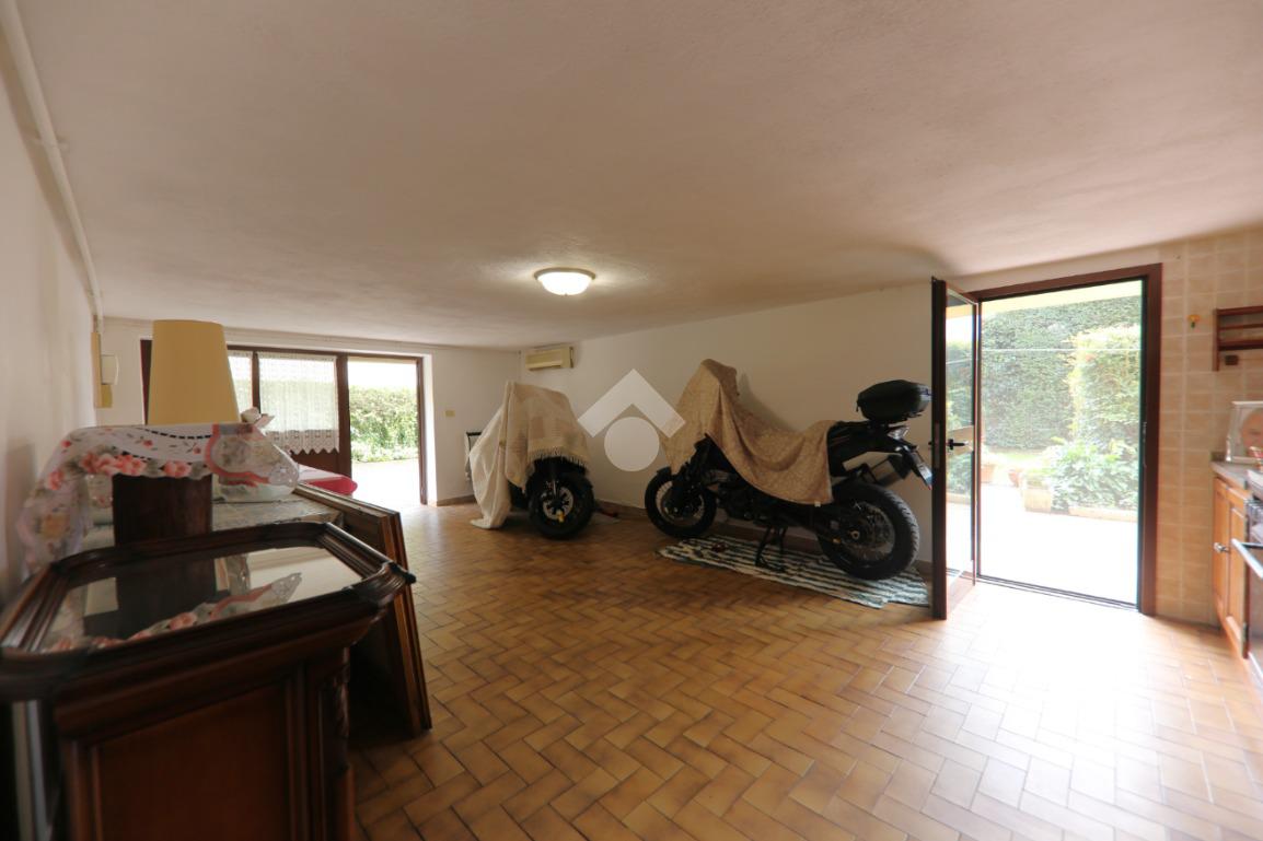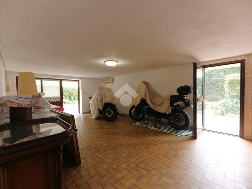 Porzione di trifamiliare realizzata a fine anni '70 su tre livelli e composta da un importante vano scala, garage e angolo lavanderia a piano terra, mentre al primo piano è presente ampio soggiorno con balcone che circonda tutto il piano, sala da pranzo e cucinotto. Al secondo e ultimo piano sono invece disponibili due camere matrimoniali, uno studio/cabina armadio e il secondo bagno. L'abitazione è circondata su tre lati da un giardino in parte pavimentato e in parte piantumato, è dotata di pozzo e impianto di climatizzazione, tetto con guaina, caldaia recente e si presenta in buone condizioni!